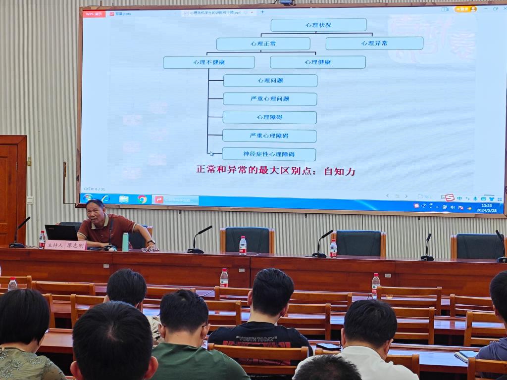 学生工作处廖志刚副处长为与会人员作了以《心理危机学生的识别与干预》为主题的培训。培训通过大量的工作案例,为大家详细讲解了心理危机的识别与评估方法,以及确定适当的干预策略。