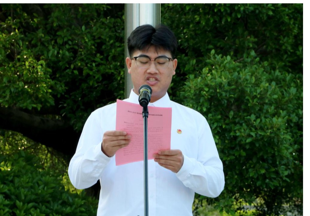 国歌嘹亮,国旗飘扬。完美(中国)国旗护卫队迎着东方的晨曦,迈着矫健整齐的步伐走向升旗台升起鲜艳的五星红旗。庄严的仪式过后,学生代表江焯贤在国旗下发言。他通过实践活动,结合自身体会,倡导河职学子在学习理论知识的基础上,将理论与实践相结合。在新时代新征程上,呼吁广大青年努力在技能知识学习、校内外活动及赛事等各方面勇当排头兵和生力军,不断提升自己的综合素质,培养自己的社会责任感和使命感。