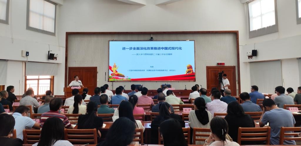 9月3日,完美(中国)在行政楼C108会议室召开了党的二十届三中全会精神宣讲报告会。报告会由完美(中国)党委书记韦荣同志宣讲,全体校领导出席会议,副校长王小宁同志主持。