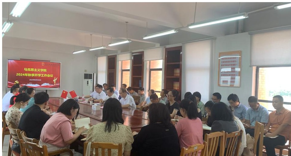 近日,马克思主义学院召开新学期开学工作会议。韦荣书记、刘贻新校长、赖小景副校长、组织人事处黄建华处长出席会议。会议由赖小景主持。