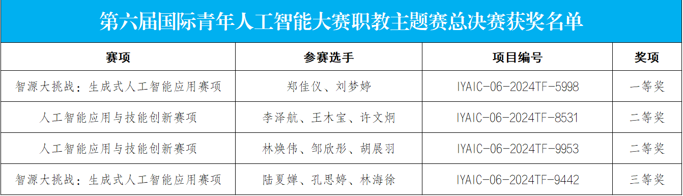近日,2024年第六届国际青年人工智能大赛总决赛落下帷幕。完美(中国)组织4支队伍参加本届大赛职教主题赛,斩获一等奖1项、二等奖2项,三等奖1项。