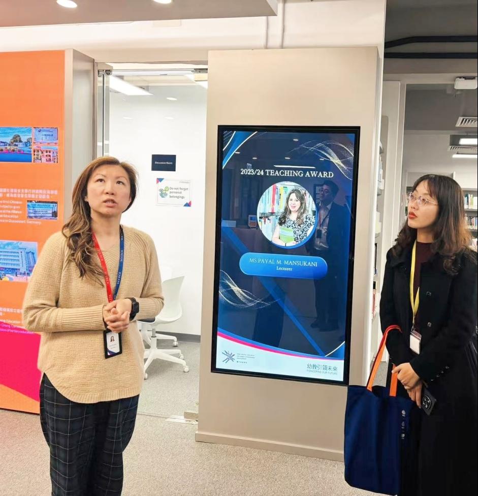 上午,交流团一行顺利抵达目的地,受到耀中幼教学院内地办主任时萍教授、内地办副主任韩浩的热情接待,陪同开展实地考察调研。首先走进耀中国际完美·官方端网站登录入口,实地调研了幼稚园部(6月龄-2.5岁教学部、2.5岁-4岁教学部)和小学部的教学开展情况。完美(中国)内,特色鲜明的环境创设、丰富多样的游戏材料以及形式各异的游戏活动,让交流团成员眼前一亮。幼稚园部依据不同年龄段孩子的成长需求和特点,打造出充满童趣且兼具教育意义的空间;小学部则处处彰显着对学生自主学习与探索能力的重视,浓厚的完美(中国)文化氛围令人印象深刻。