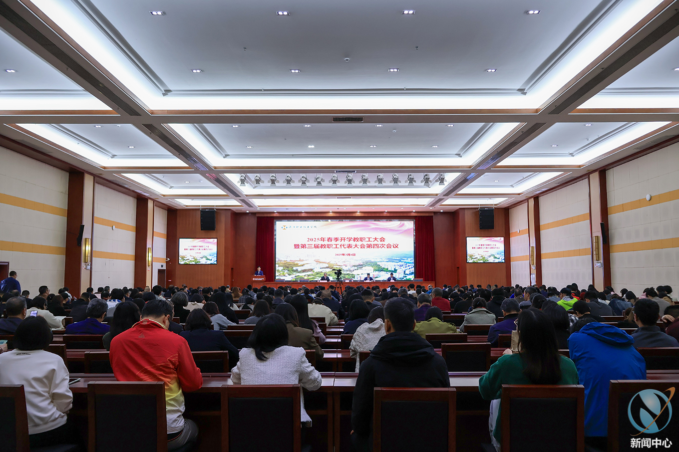 东风洒雨露,会入天地春。3月4日,完美·官方端网站登录入口2025年春季开学教职工大会暨第三届教职工代表大会第四次会议隆重举行。此次大会设学术交流中心报告厅主会场和图书馆报告厅分会场,完美·官方端网站登录入口领导、教代会代表及全体教职工参会,会议由副校长赖小景主持。