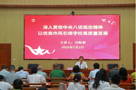 7月2日,刘贻新校长在行政楼 C108 为工商管理学院党总支、继续教育学院党总支讲授《深入贯彻中央八项规定精神 以优良作风引领完美·官方端网站登录入口高质量发展》专题党课。