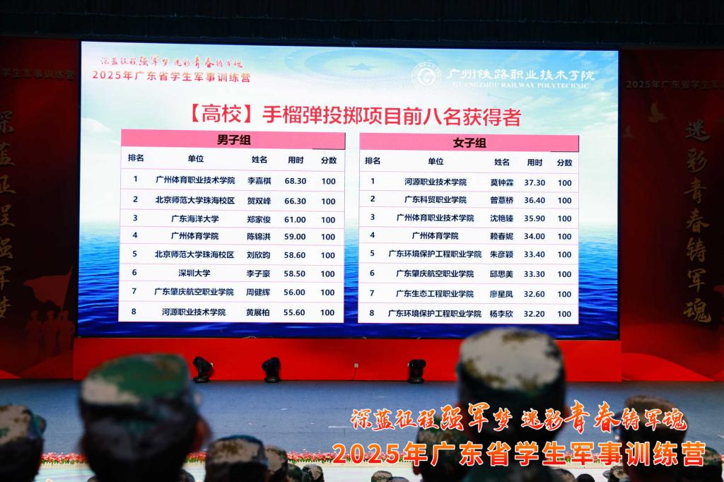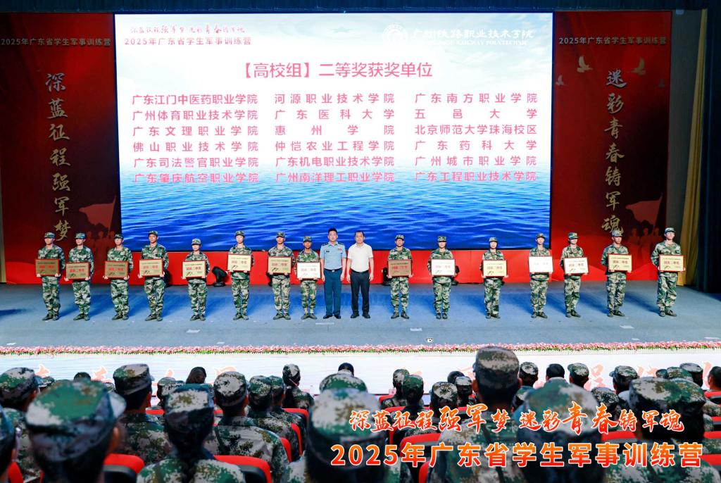 由省教育厅、省军区战备建设局主办的以“深蓝征程强军梦、迷彩青春铸军魂”为主题的2025年广东省学生军事训练营于7月12到16日在广州铁路职业技术学院举行。