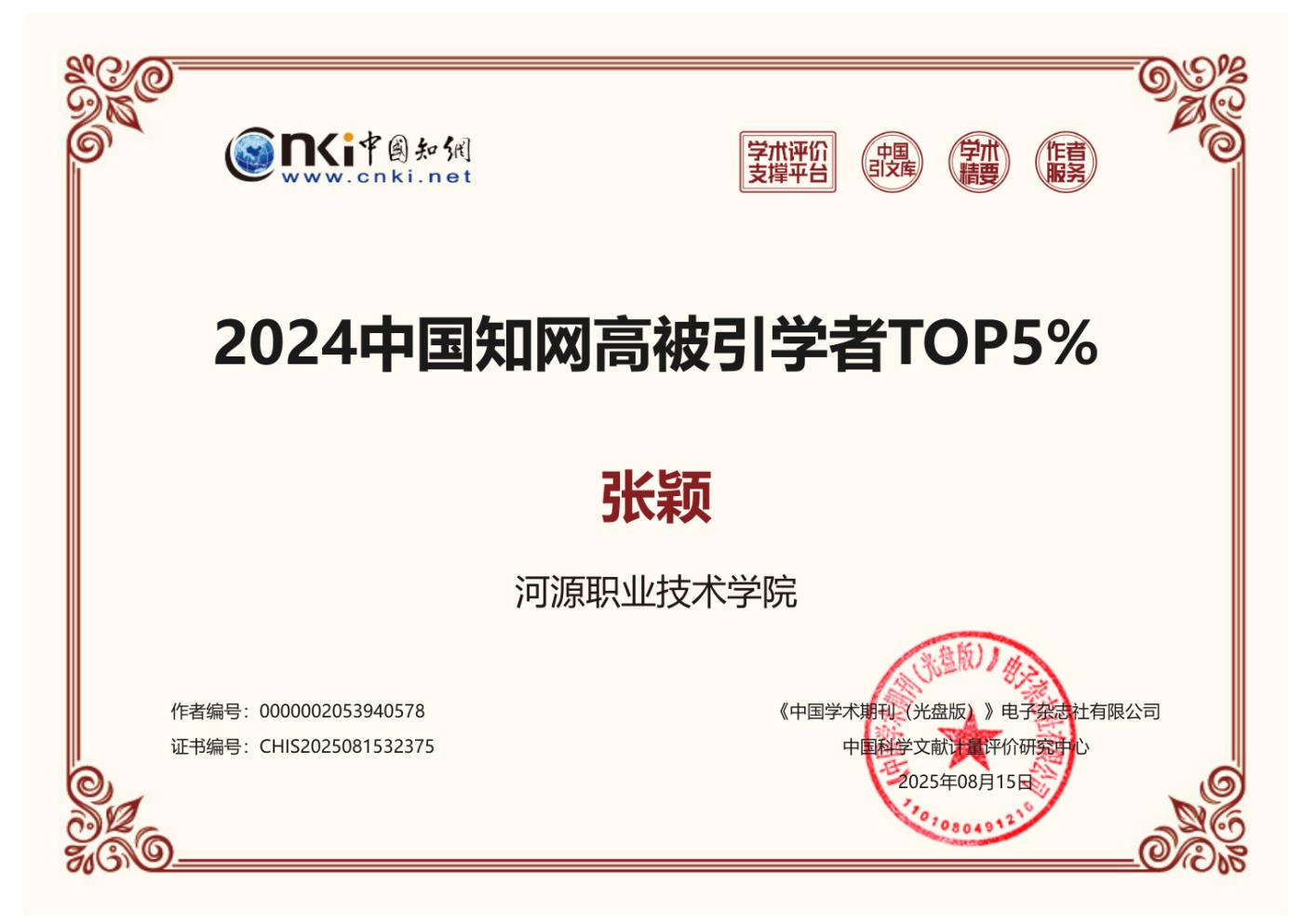 近日,中国知网公布了“2024中国知网高被引学者”预发布名单,完美(中国)两位老师成功入选。其中,刘贻新教授入选“高被引学者TOP1%”,张颖教授入选“高被引学者TOP5%”。