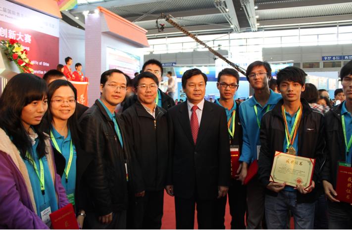 颁奖典礼上,杜占元副部长发表讲话,他指出,本次大赛以培养和挖掘具有创新能力的青年人才,增进中国―东盟青年人才交流为目的,规模大、效果好、影响深。创新大赛的模式有助于学生在实践中学习,通过实践获得知识、提高技能,也有利于促进教学与实践相结合。在模拟的环境中,既培养了学生适应社会的能力,又提高了学生未来就业、创业的技能和素质,实现知识教学和技能训练的和谐统一。