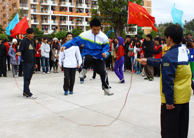 运动员们你追我赶,激烈的角逐引发了现场的高潮,现场的呐喊声此起彼伏。最终,机电学院代表队以1’00” 94的成绩获得女子组的冠军,工商学院代表队以49”85的成绩赢得男子组冠军。