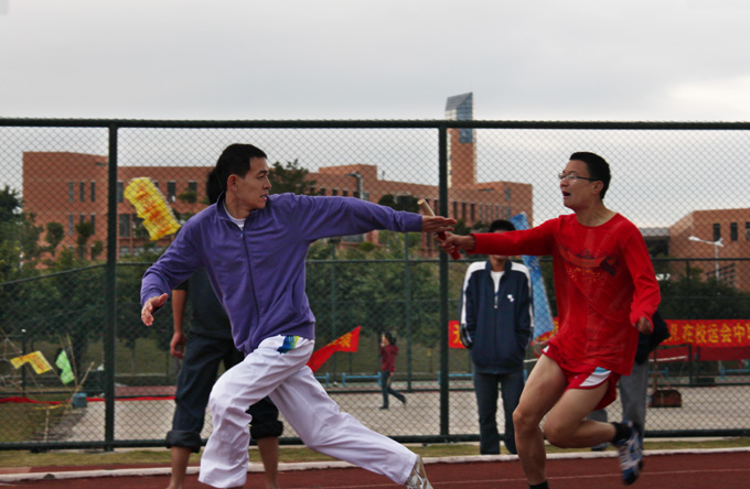 16点整,教工组4X100接力赛决赛在运动场上进行。继续教育学院代表队和人文学院代表队分别以1’11” 47和52” 45的佳绩分获本届运动会教工青年组女子和男子的冠军。