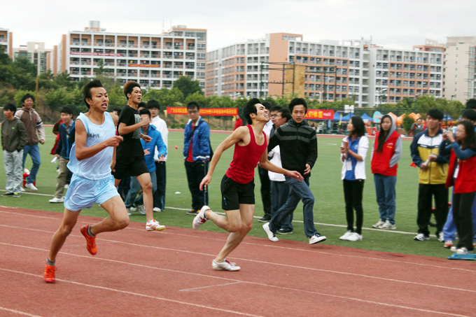 早上10时许,学生组男女子400米决赛在运动场决出名次,来自艺术学院的詹旭东和来自机电学院的梁友分获男女子冠军。