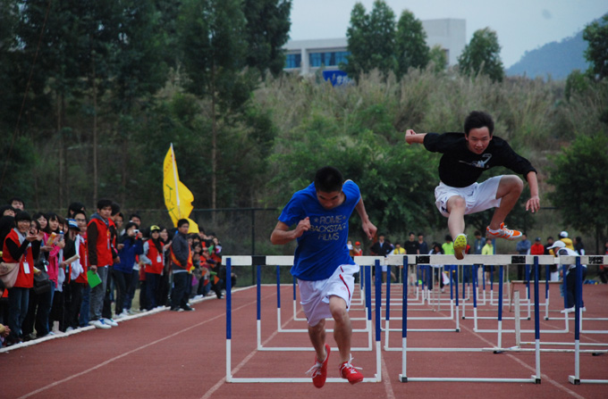 决赛中,机电学院的江振杜以敏捷的身手,技压全场凭借17’93的优异成绩夺得该项目的冠军,同样来自艺术与设计学院的詹旭东也不甘落后,以1 8’40的成绩获得亚军。