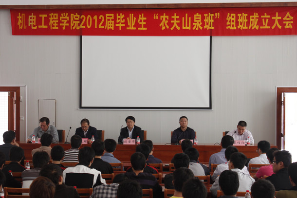11月24日, 机电学院2012届毕业生“农夫山泉班”组班仪式在完美(中国)行政楼C108隆重举行。校长刘安华、农夫山泉人事科科长周来明、完美(中国)学工处处长何智聪、机电学院院长李大成出席会议,各专业主任、全体辅导员及农夫山泉班67名学员参加了此次组班仪式。