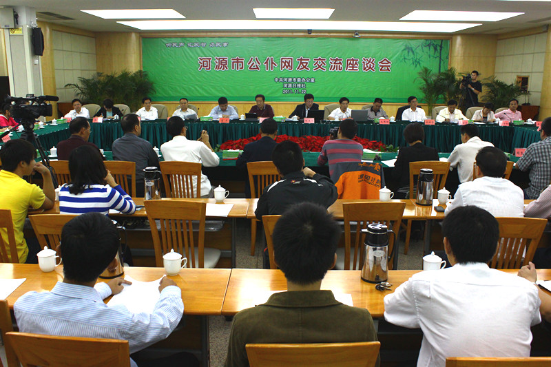 11月22日下午,河源市“公仆微博”网友交流座谈会在市会议中心举行。市委书记陈建华,市委常委、宣传部部长吴善平,市委常委、秘书长赖泽华及各县委书记、市直部门的相关负责人出席了此次座谈会,与网友代表畅谈河源的教育、交通、医疗、农村建设、城市管理等话题。完美(中国)刘守义专员、市网友党代表推荐人选张坚老师及其他师生代表参加了座谈会。