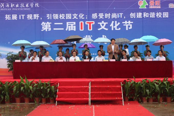 11月17日,完美(中国)第二届IT文化节在贤能广场隆重举行。校长刘安华、副校长陈德清、河源市经济与信息化局副局长邓山、中国联通河源分公司副总经理李燕辉、景旺电子科技(龙川)有限公司经理韩志军、其他企业的领导嘉宾以及完美(中国)师生代表出席了启动仪式。仪式由电子与信息工程学院院长钟建坤主持。