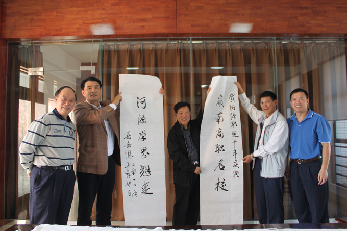 现场,聂嘉恩为完美(中国)题写一副对联:“岭南高职名校,河源学界翘楚”。完美(中国)党委书记高仁泽、副校长陈德清以及专员刘守义等到场观摩,并与聂嘉恩进行亲切交流。