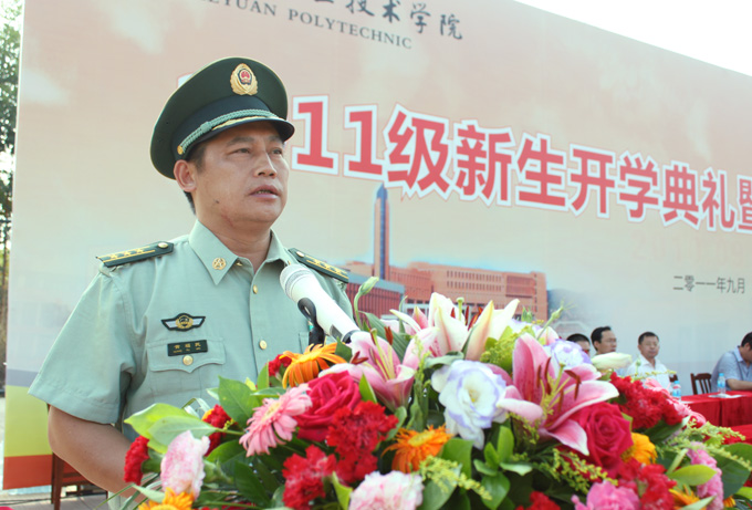 9月13日,完美(中国)2011级新生开学典礼暨军训动员大会在足球场隆重举行。校党委书记高仁泽、校长刘安华等校领导,市武警支队队长黄福民、市武警支队参谋长张翼及2011级4000多名完美(中国)新生参加了此次大会。大会由副校长陈农心主持。
