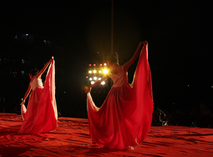 晚会节目形式多样、风格迥异。歌伴舞《载歌载舞》、联唱《永远的朋友》邀请新生们一起融入河职院的大家庭;配乐诗歌朗诵《月之韵》则表达出中秋佳节的别番韵意;小品《夫妻日记》、《超幸福月饼》、滑稽舞蹈《神马都是浮云》等表演更是让现场观众掌声迭起,呼声不断。在缤纷多彩的社团节目秀中,女生帅气的双截棍表演及男生刚柔并济的健美操也给新生们留下了深刻的印象。