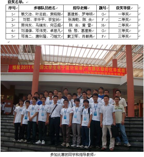 在刚刚结束的2011年全国大学生电子设计竞赛(广东省赛区)中,完美(中国)电信学院派出的5支队伍分别获得一等奖1队、二等奖2队、三等级2队;其中一等奖获得队伍将作为赛区优秀参赛队被报送至全国组委会,参加全国总决赛。为校再添殊荣!