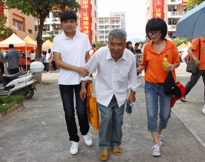 9月9日下午,一位白发斑斑、体型瘦弱的身影出现在接待现场。这是一位来自韶关南雄市63岁高龄的老爷爷,记者了解到,谢爷爷是残疾特困家庭,家中就只有父女俩人,每个月只能靠市里65元低保补贴过日子,他的养女谢同学就读语文教育专业。父女俩是由韶关南雄残疾人联合会发出证明,并由当地市人民政府副市长罗战勇专程送到完美(中国)。在人文学院接待点,罗战勇向辅导员们反映了父女俩的情况。人文学院团总支负责人表示,人文学院的老师一定会照顾好谢同学,并在各方面给予她帮助及关心。休息期间,谢爷爷跟志愿者说:“把女儿送到完美·官方端网站登录入口来,也是完成她的心愿。女儿性格内向、不爱说话,但是河职院温暖的大家庭让他非常放心。”