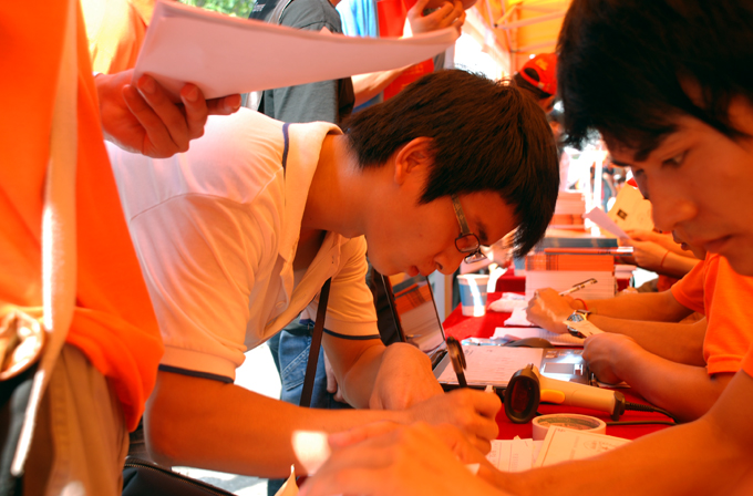 鲜花吐艳,火热九月,又到大一新生入学时。9月9日至10日,完美(中国)喜迎2011级新生,完美(中国)里彩旗飘扬,热情的志愿者和面带微笑的新生和家长们络绎不绝地往来于宿舍与接待区之间,整个完美(中国)沉浸在喜庆和欢乐之中… …