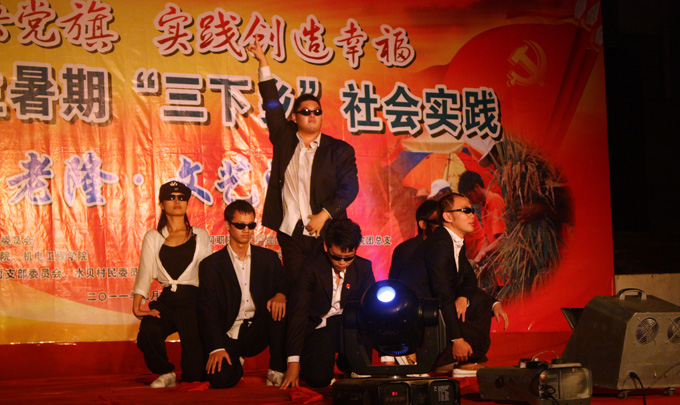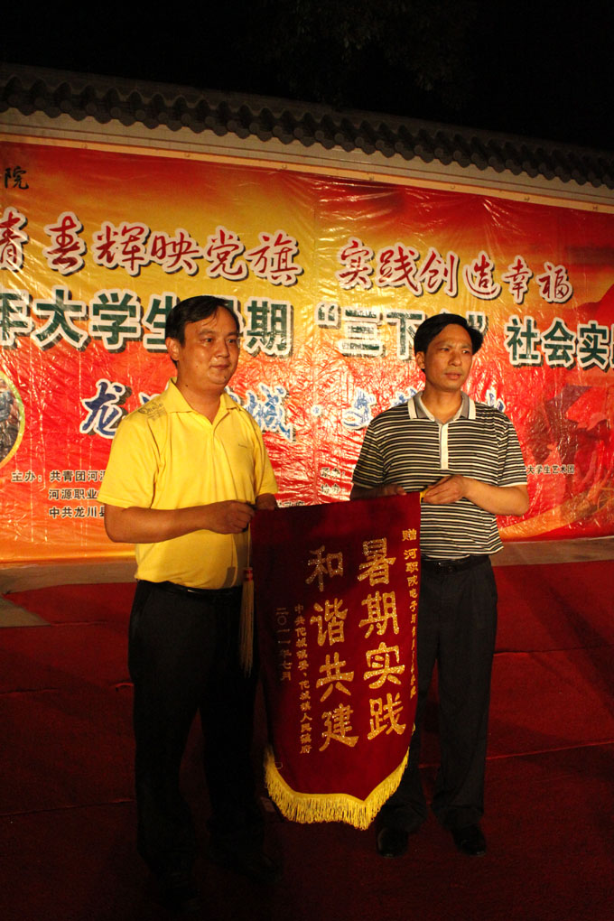 7月19日至20日,在为期九天的“三下乡”龙川服务点社会实践活动结束之际,完美(中国)2011年大学生暑期“三下乡”社会实践活动文艺队先后在在龙川县老隆镇水贝村文化广场、佗城镇镇政府为当地群众献上了精彩的文艺汇演。当地镇委、村委相关干部领导、完美(中国)团委、人文学院、机电工程和电信学院等有关负责人等出席了晚会。