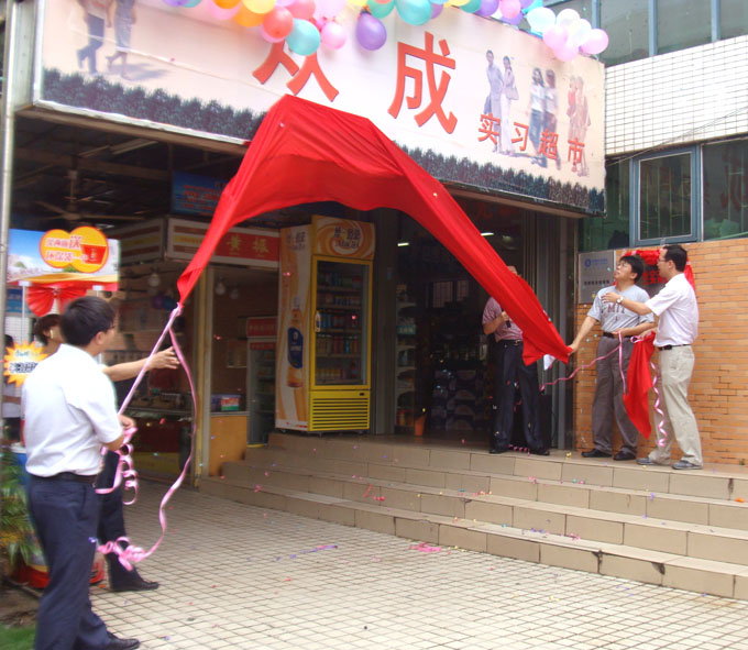 6月15日,工商管理学院市场营销专业校内生产性实训基地――“众成实习超市”揭牌开业。校长刘安华、教务处、实训中心、工商管理学院相关负责人出席了揭牌仪式。