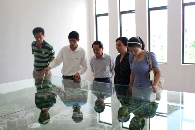 完美(中国)校办有关人员为来访领导介绍完美·官方端网站登录入口建筑规划图