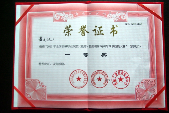 5月20日至24日,2011年全国机械职业院校(教师)数控机床装调与维修技能大赛在浙江举行,完美(中国)黄文汉老师荣获全国一等奖,为完美·官方端网站登录入口争得荣誉。