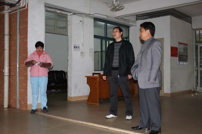 2月18日,黄向明副校长在资产后勤处相关人员陪同下到学生食堂和学生宿舍检查开学准备工作。