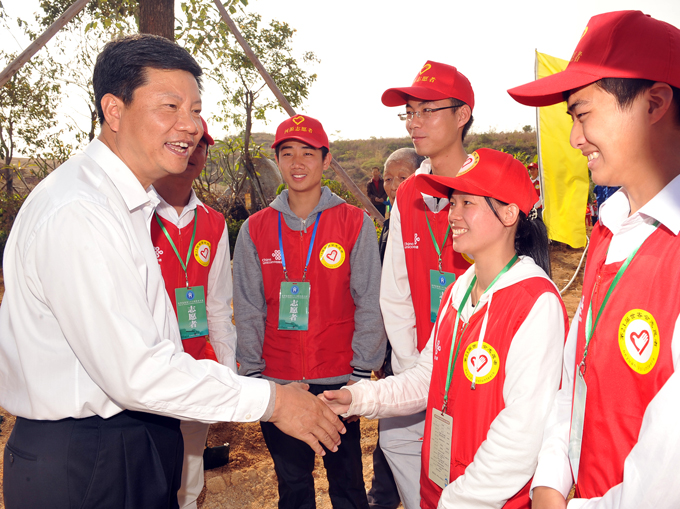 市委书记陈建华与志愿者亲切交流