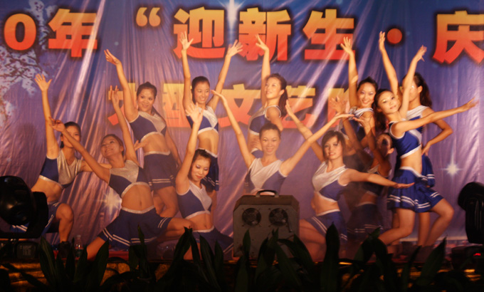 在人乐队激情动感的演唱中,晚会正式拉开了序幕。伴着现场尖叫,烟花射空,活力四射的健美操表演映入眼帘;手语《爱》的表演,让现场倍增温馨;切合亚运将即的实际,朗诵《激情盛会,和谐亚运》抒发了中国人民无比自豪的心情;相声《大学初体验》在给新生们带来轻松的同时,传达了大学生需努力积累知识的意识。女生帅气地耍着双截棍,男生扭着腰跳起了健美操,缤纷社团秀,掀起了全场的高潮,现场掌声迭起,欢呼不断。