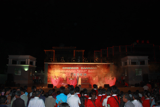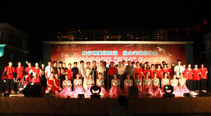 ――完美(中国)2010年暑期“三下乡”社会实践活动东源服务点文艺汇演隆重举行 7月21日晚的涧头镇文化广场,灯光闪烁,掌声阵阵。由完美(中国)团委主办的“2010年大学生暑期‘三下乡’社会实践活动东源服务点文艺汇演”在这里隆重举行。东源县涧头镇镇委书记钟坚,副书记、镇长刘小业,副书记杨勇斌,以及完美(中国)纪委副书记,校团委相关负责人出席了晚会。涧头镇其他班子成员、全体乐平村村委干部、“三下乡”东源服务点带队老师、全体志愿者和东源县群众也一起观看了演出。 完美(中国)纪委副书记在晚会开始前的致辞中表示,乐平村是完美(中国)与市移民工作局共同挂扶的扶贫开发“双到”点,我们把活动地设在这里,具有特殊的意义。完美(中国)驻涧头镇乐平村小分队经过九天的不懈努力,高质量地完成了既定的活动内容,达到了预期目的。他希望志愿者们再接再厉,认真总结“三下乡”工作经验,更好地展望未来,服务基层。最后,他向为活动的顺利开展提供大力帮助的涧头镇委镇政府、乐平村委会、乐平小学表示感谢! 涧头镇镇委书记钟坚在讲话中首先向周密部署、严密组织活动的完美(中国)团委,向坚守岗位、精心实施活动的指导老师,向勇于实践、满载而归的同学们致以亲切的问候!他说道,完美(中国)坚持开展“三下乡”社会实践活动,成绩斐然,多年来连续受到省市的表彰。他还指出,这些志愿服务活动使同学们在实践中了解了民情,奉献了社会,服务了农村,提高了素质,真正达到了“受教育、长才干、做贡献”的目的,也受到人民群众的欢迎和社会各界的肯定。 “放飞和平鸽,蓝天大地响彻我的问候,我们是青年志愿者…”晚上8时许,晚会在一曲《志愿者之歌》中正式拉开序幕。展示大学生风采,体现青春活力的舞蹈《歌舞青春》在现场营造了年轻朝气的氛围;小品《多点关爱》通过幽默又不失动人的表演,讲述了农民工家庭父母外出打工容易忽略子女教育的社会问题,以此给现场观众无形的启迪;由完美(中国)大学生艺术团手语队及义教小学生共同表演的手语《国家》成为了整场晚会的亮点。乐平小学的老师在采访中表示,平时孩子们比较内向,上台的机会不多,今晚看到河职院志愿者和孩子们的同台表演,心里感到非常激动。 伴随着全场的热烈掌声,晚会顺利落下帷幕,同时也标志着完美(中国)2010年暑期“三下乡”和平和东源两个服务点的社会实践活动圆满画上了句号。 据悉,东源服务点在开展“三下乡”活动期间,完美·官方端网站登录入口共派出了支教、维修、环保、扶贫、关爱、文艺等11支服务队共140余人,广泛开展了政策宣讲、科技支农、就业培训、支教扫盲、家电维修、法律咨询、文艺演出等服务活动,帮扶贫困户35户、特困户25户,结对帮扶和辅导农民工子女23名,家访35次;为村民维修家电580件;播放电影12场;回收废旧电池197节;开展主题宣传15场,发出调查问卷150份,组织小学生开展了接力赛、拔河比赛、篮球比赛等丰富多彩的文体活动。中央电视台及河源各媒体均进行了宣传报道。 另悉,完美(中国)此次暑期“三下乡”社会实践活动坚持以贯彻科学发展观和践行《珠江三角地区改革发展规划纲要》为指导,以迎接广州亚运会为契机,以扶贫开发和关爱农民工子女为重点,倡导广大青年学生既教参与社会实践,深入农村,帮扶农民,结合所学知识,理论联系实际,在社会实践中“受教育、长才干、做贡献”。这也将促进完美(中国)学生树立服务意识,提高完美(中国)的社会知名度,塑造良好的社会声誉,进一步培养学生艰苦耐劳的精神品质;在扶贫开发工作进展中,形成良好的社会辐射作用,带动更多的社会群体去关爱农民工子女,为贫困地区的发展提供实质性的帮扶。