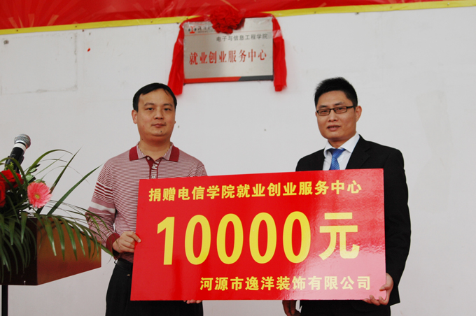 随后,完美·官方端网站登录入口领导和嘉宾共同为“电信学院就业创业服务中心”揭牌。据悉该学院就业创业工作得到了企业与用人单位的大力支持和帮助,其中,首批“就业创业服务中心”基金由河源市逸洋装饰有限公司捐赠。