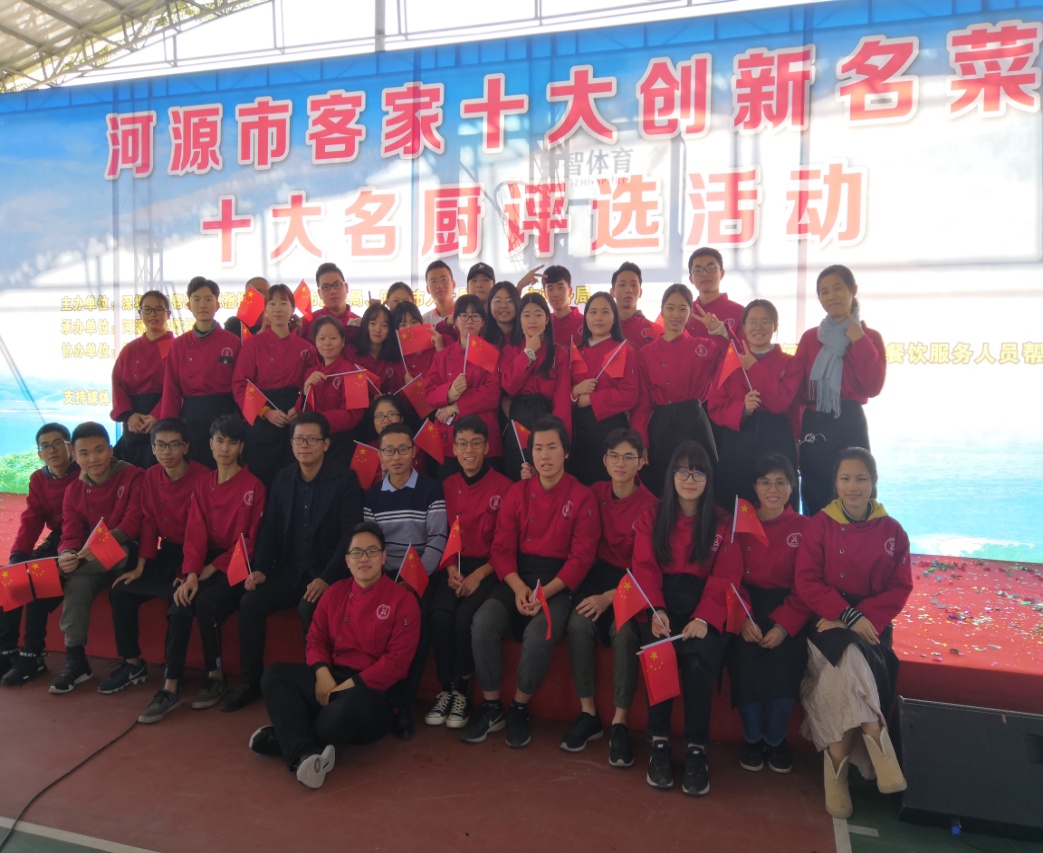 12月17日上午,酒店管理专业、烹调工艺与营养专业教师带领17级烹调专业、18级酒店专业和烹调专业学生参加了河源市客家“十大创新名菜”、“十大名厨”比赛开幕式。做为本次大赛的协办单位,酒店、烹调专业师生主要为现场提供了烹饪展台布置、茶席展示以及志愿者服务。通过参与此次活动,师生参观了展台菜品,并见识和品尝了连平、紫金一带牛肉丸、伯公坳凉粉、糖环、大柴湖花生等一批客家非遗小吃,大大拓展了学生技能比赛视野。
