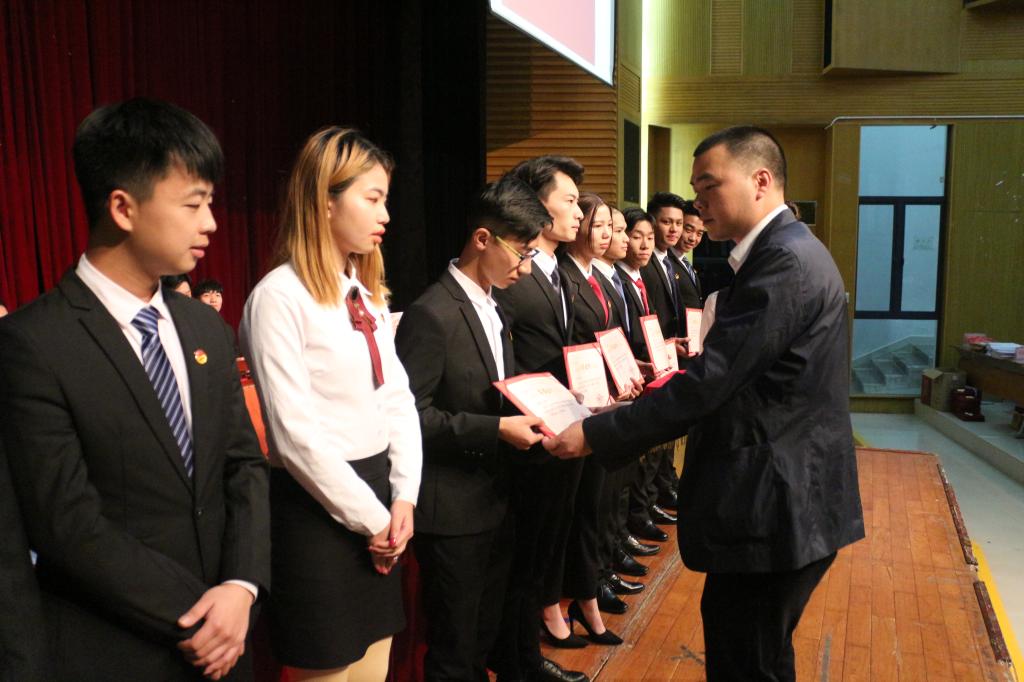 接着,翁宇芳宣布关于《电子与信息工程学院第十一届团总支、学生会优秀学生干部》的决定。电信学院第十一届团总支学生会主席团成员黄东明、翁宇芳、杨小武等20名学生干部依次上台,由杨日奎为他们颁发聘书。并为2017—2018年完美·官方端网站登录入口电子与信息工程学院志愿服务中“优秀志愿者”和在2017—2018年完美·官方端网站登录入口电子与信息工程学院团总支学生会工作中,荣获“先进个人”的人员领奖。