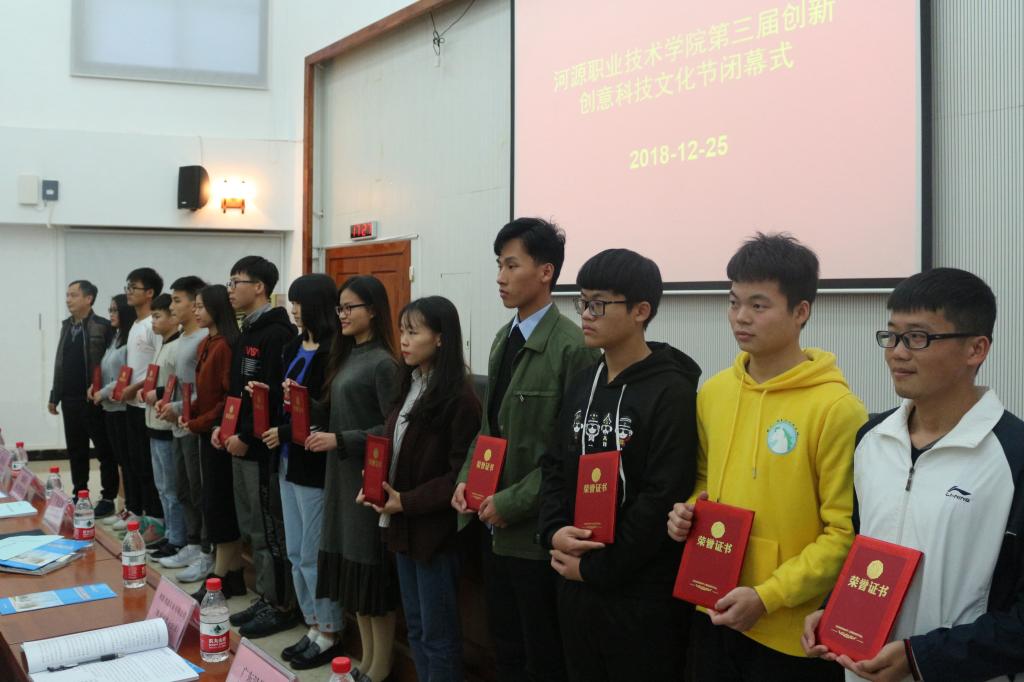 12月25日下午,机电学院2018年校企合作理事会暨河职院第三届“创意创新科技文化节”闭幕式于行政楼C108举行,机电学院院长钟建坤、党总支副书记黄亮、副院长廖晓明、完美·官方端网站登录入口众创空间负责人黄文汉、校企办主任陈艳芳、全体专业主任、教师代表、企事业单位代表以及获奖学生代表参加了此次活动,活动由陈艳芳主任主持。