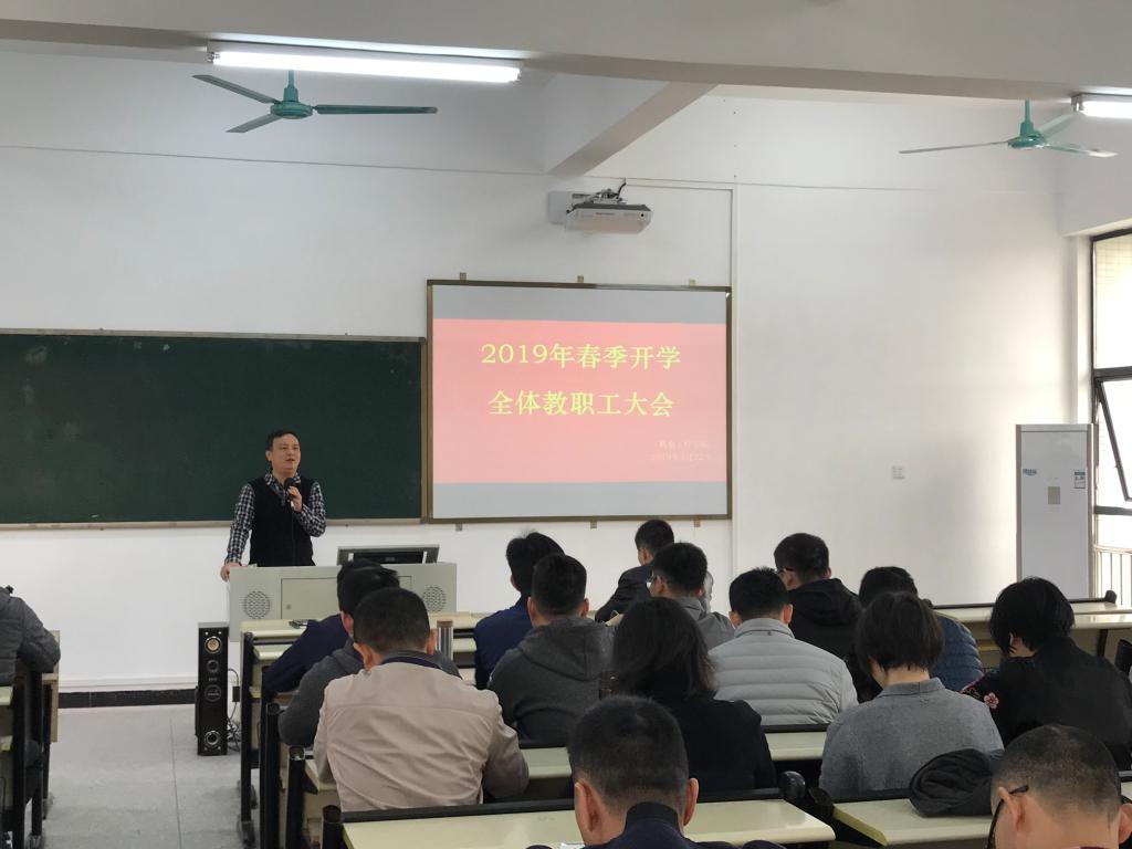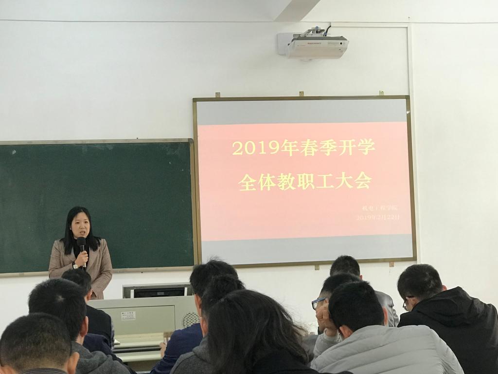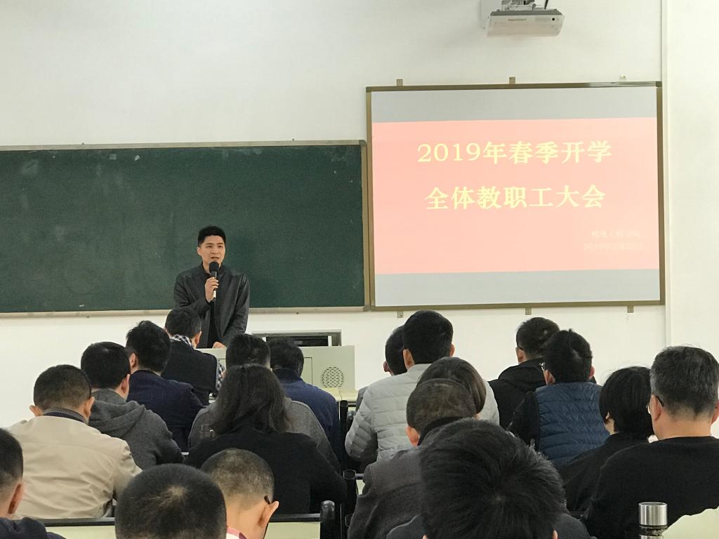 2月22日下午4点,机电工程学院在实D312召开2019年春季开学教职工大会,全院教职工80余人参加会议,会议由钟建坤院长主持。