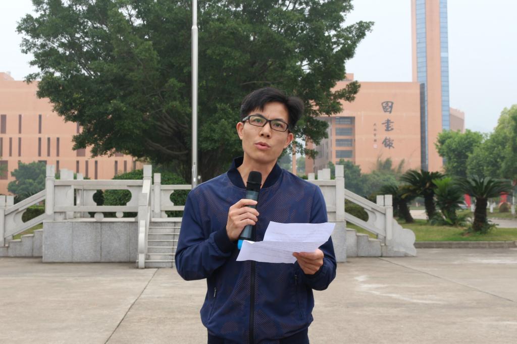升旗仪式之后,来自2017级食品营养与检测1班吴萍精作为学生代表发言。吴萍精同学号召大家应提高自我环保意识、增强责任感,全身心投入到美丽完美(中国)活动中。