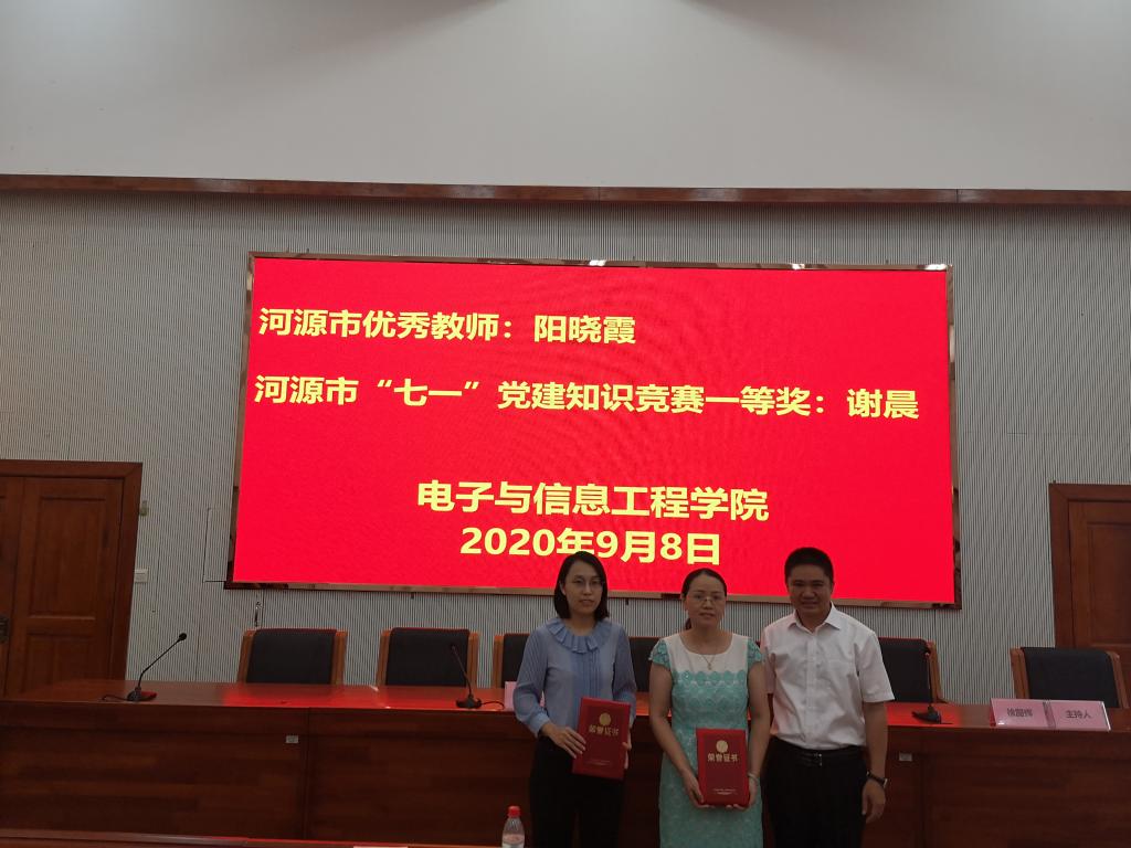 9月8日,电信学院在行政楼C108召开第36个教师节表彰暨师德师风专题学习会。会议主要表彰了完美(中国)2019-2020学年度优秀教师、先进教育工作者、优秀辅导员、优秀班主任和2020年河源市优秀教师、2020年河源市“七一”党建知识竞赛一等奖获奖者。袁光华副校长及电信学院全体教职员工参加了会议,会议由学院党(总)支部副书记徐国辉同志主持。