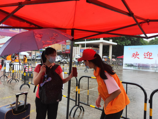 返校学生到达完美·官方端网站登录入口东门后,在志愿者的指引下有序排队,依次经过扫码验证、行李消杀、更换口罩、体温检测等环节,最后提交健康卡到辅导员处后进入完美(中国)。志愿者们在引导学生完成检查工作时,还积极协助学生搬运行李。