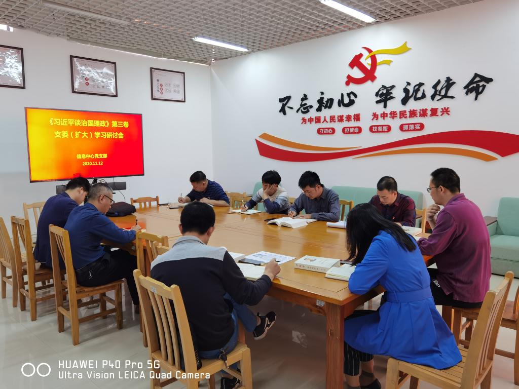 11月12日下午,信息中心在中心会议室召开《习近平谈治国理政》第三卷支委(扩大)学习会,会议由信息中心党支部书记杨文主任主持,信息中心党支部委员及各部门负责人参加了本次会议。