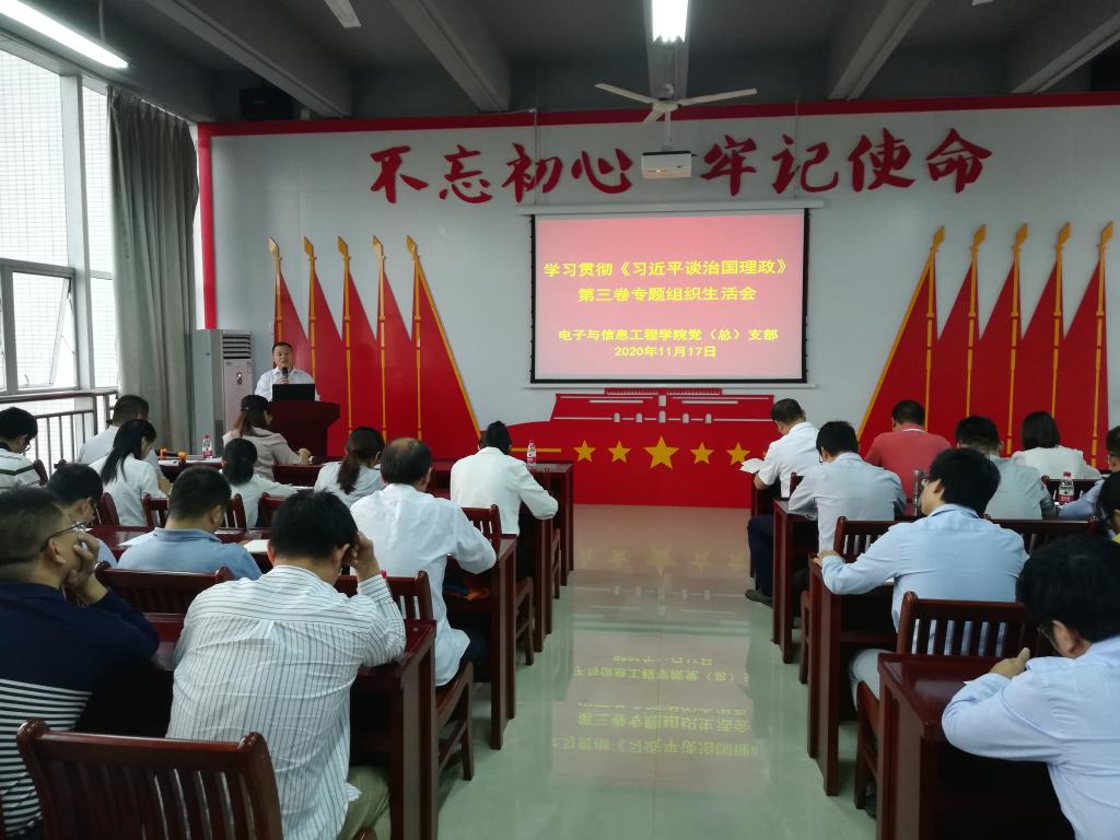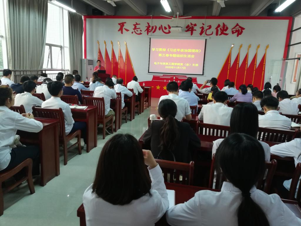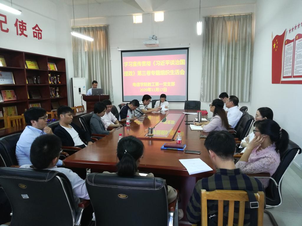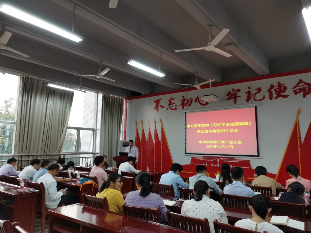 为深入学习贯彻《习近平谈治国理政》第三卷,11月17日,电信学院党总支部组织全体党员开展了学习宣传贯彻《习近平谈治国理政》第三卷活动。