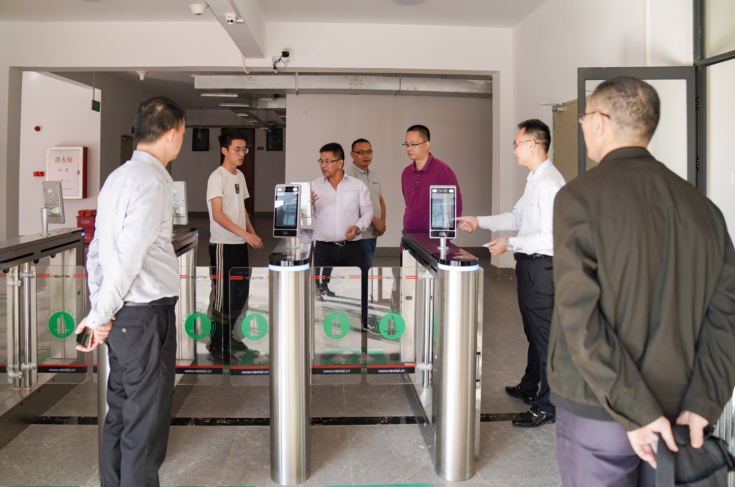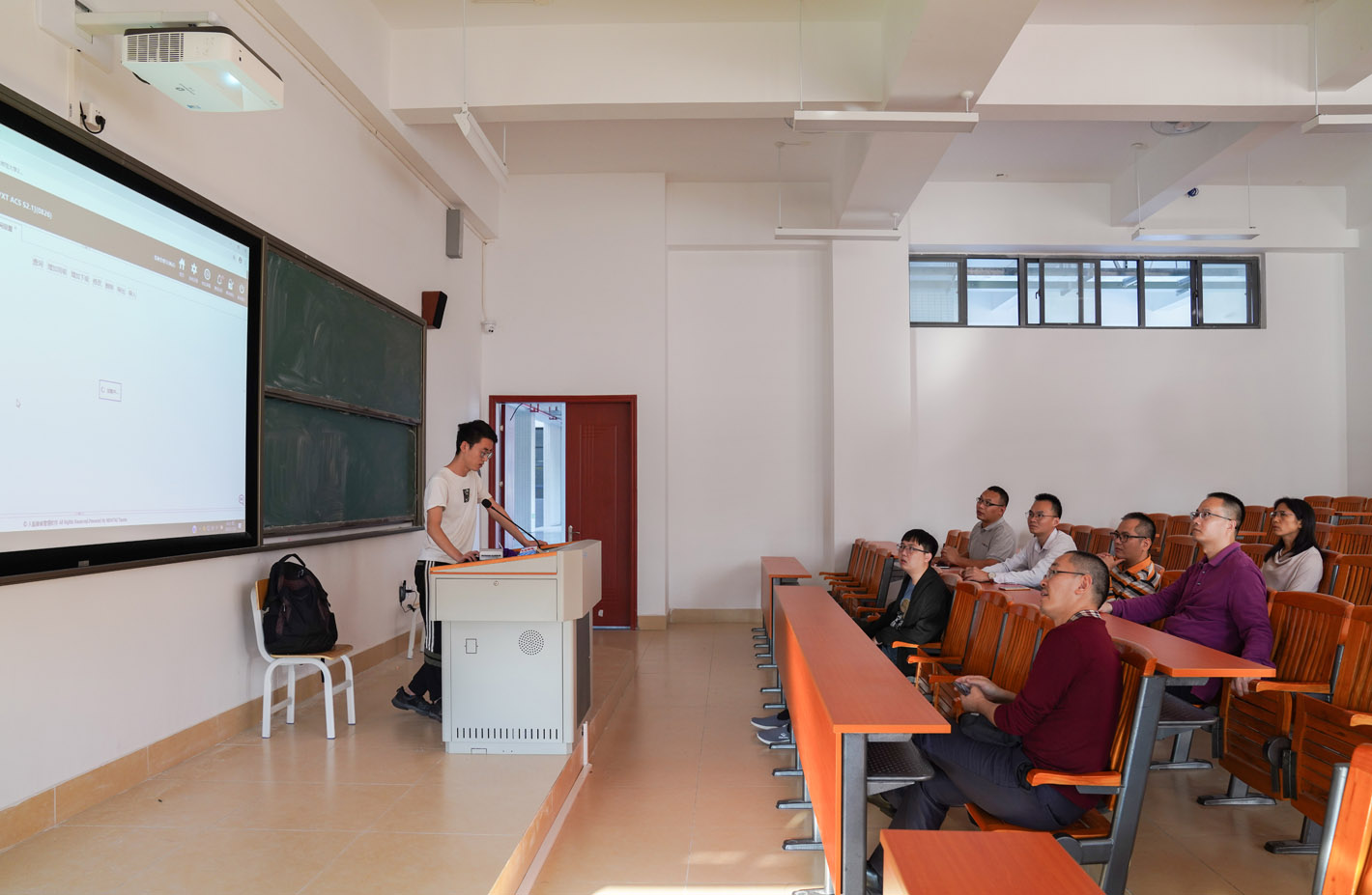 随后,在多媒体教室,技术人员针对人脸宿舍管理软件,就基本设置、房间设置、节假日管理、房间人员管理、教师管理、楼管管理等进行了演示,双方进行了友好的交流互动。