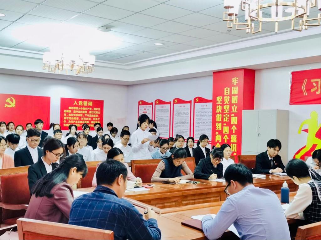 11月24日下午,我院学生党支部在学术交流中心党员活动室召开支部大会,讨论表决林锦霞等9名预备党员预备期满转为中共正式党员及吸收马敏宜等50名同志为中共预备党员事宜。学院党总支副书记邹东平出席大会,支部全体党员、50名发展对象,以及班级代表参加了大会。会议由学生党支部书记王波主持。