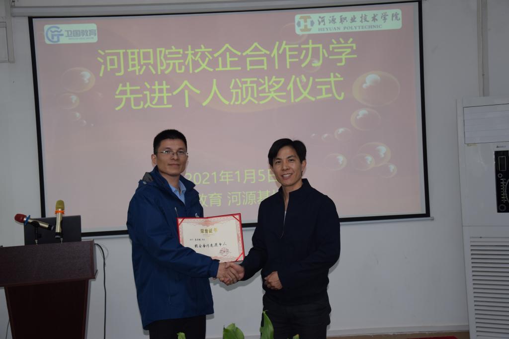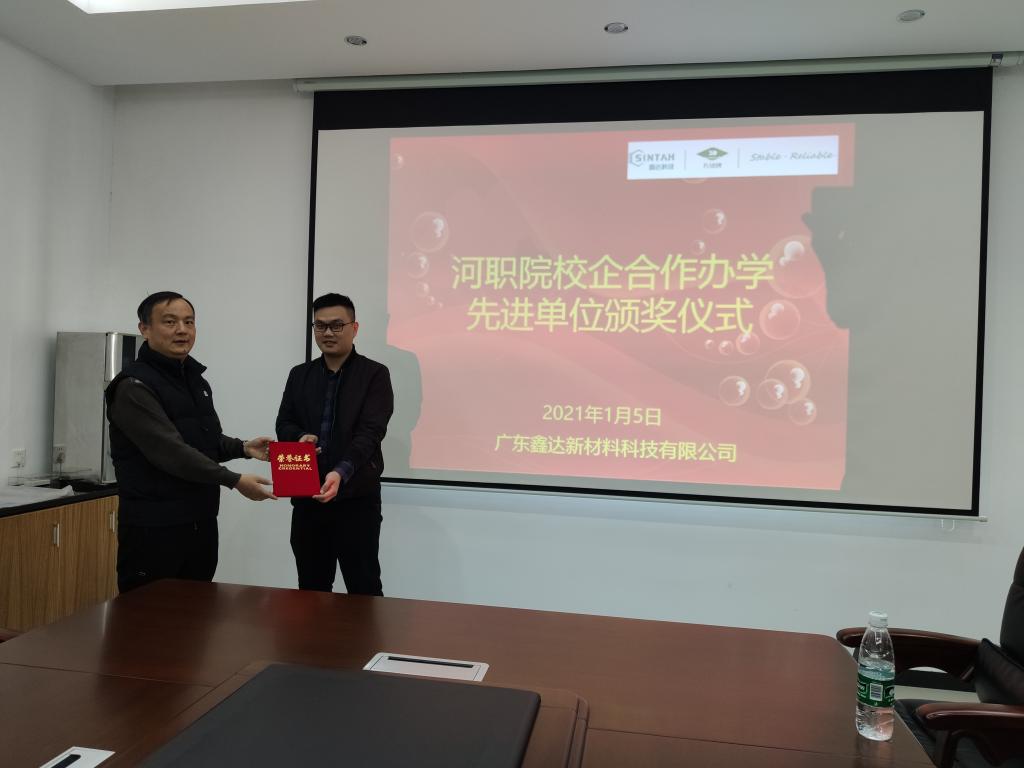 1月5日,机电工程学院钟建坤院长一行先后前往位于东源县蝴蝶岭工业园的广东鑫达新材料科技有限公司(以下简称“鑫达科技”)和位于高新区的卫国教育科技(河源)有限公司(以下简称“卫国教育”),分别为两家获得2020年度校级校企合作先进单位企业授牌,对校企合作先进个人颁发证书,并召开专业建设研讨会。