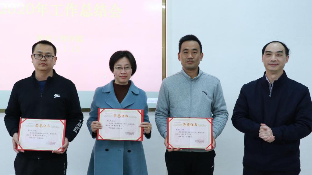 随后,赖小景副校长为学院2020年优秀党务工作者、优秀共产党员以及在河源市第十三届自然科学优秀学术论文评审中获奖教师颁发荣誉证书。