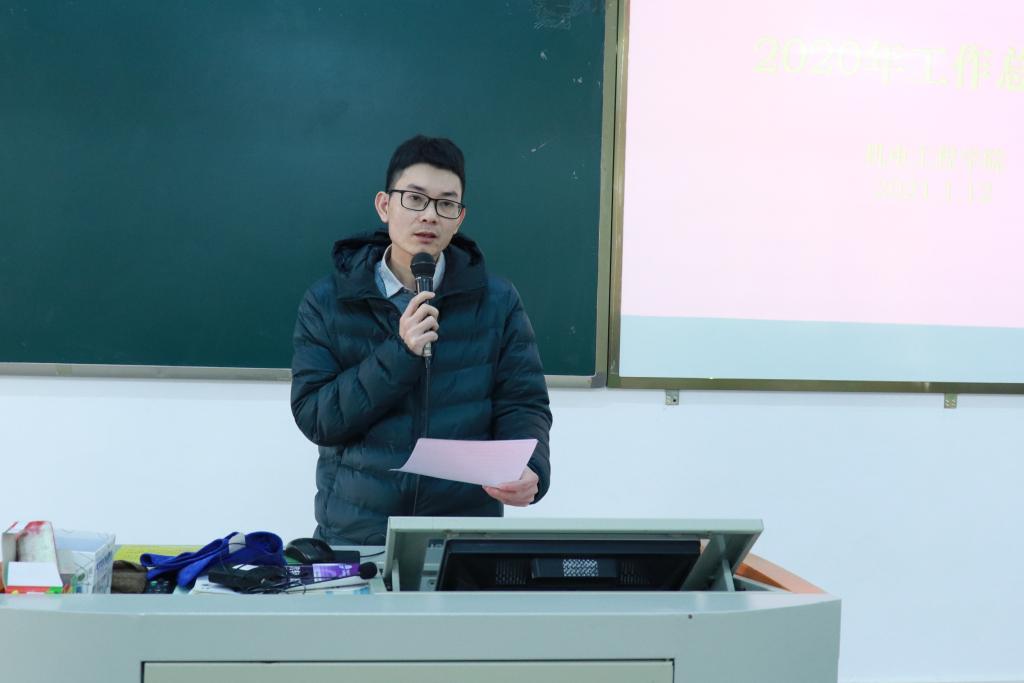 1月12日下午,机电工程学院在实训楼D312召开2020年工作总结会,赖小景副校长、学院全体教职工参加了此次活动,会议由钟建坤院长主持。