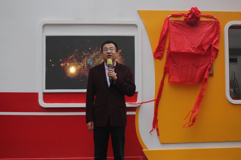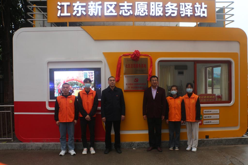 陈晓峰书记、杨日奎和学生党员代表共同为“e”修志愿服务队服务点和社区志愿者服务基地揭牌。