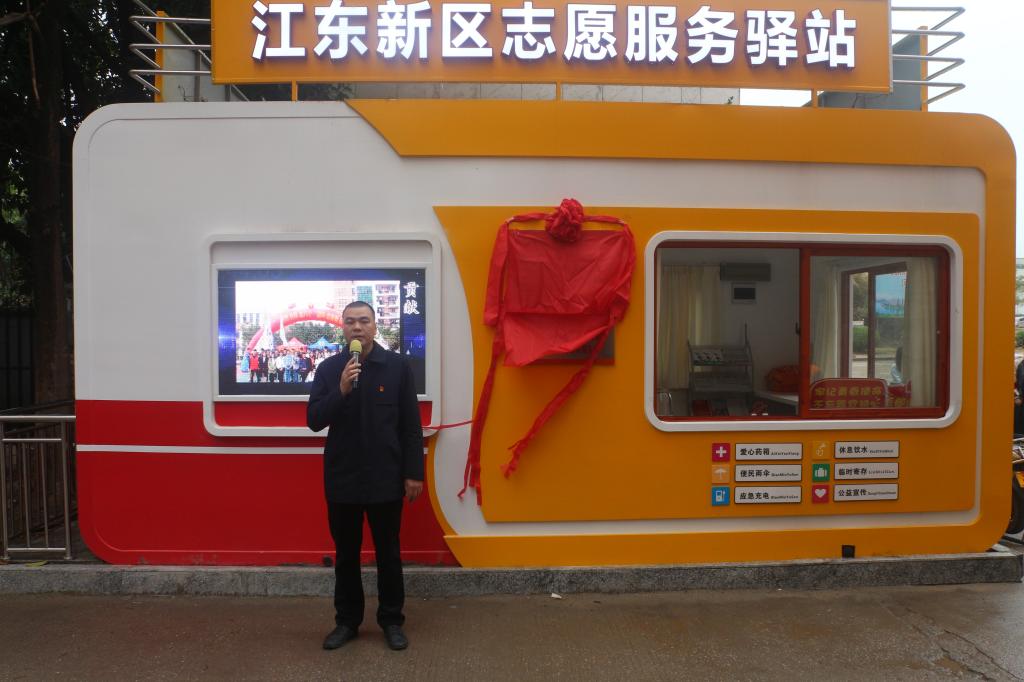 仪式上,杨日奎介绍活动议程和“e”修志愿服务队服务点具体工作职能、工作事项、2021年“雷锋月”活动志愿服务等主要内容。