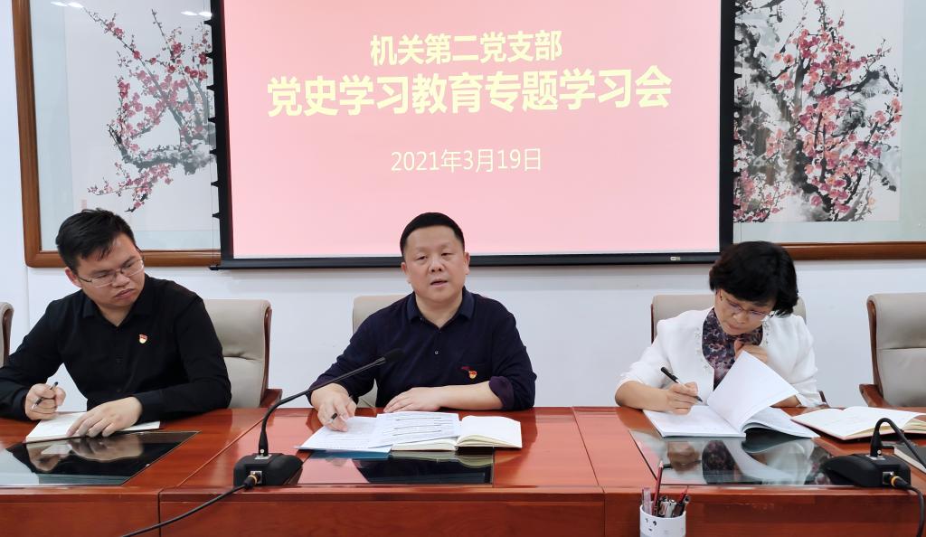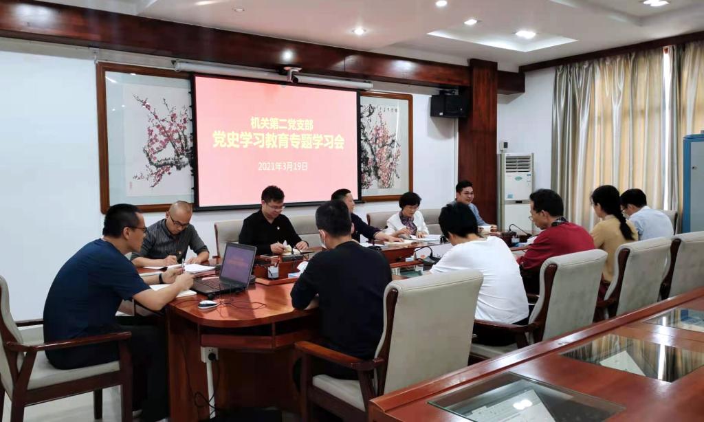 3月19日下午,机关第二党支部在行政楼第一会议室组织召开党史学习教育专题学习会。